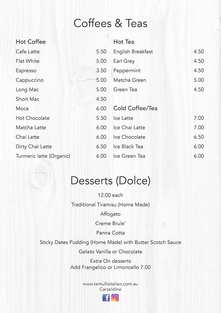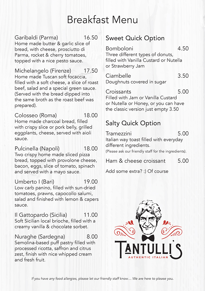 Tantulli’s Italian are FULLY LICENSED restaurants.